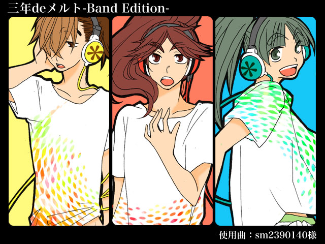 調子にのったといえば、使い回しのイラストに全くの時代錯誤ですが三人組にヘッドホンをつけさせるという暴挙に出てみました。